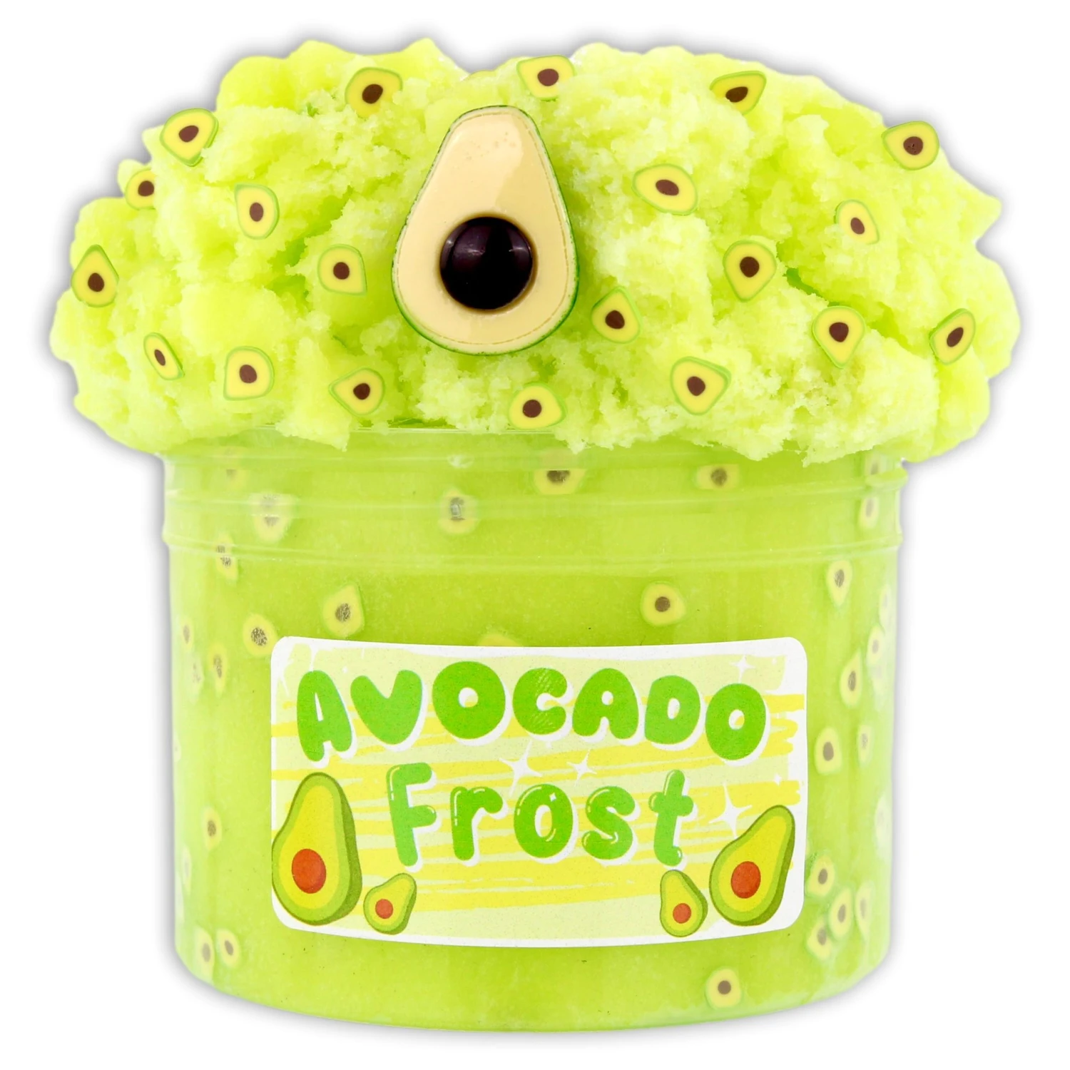 a spin-off of our avocado puff butter slime! soft, dreamy icee slime with a refreshing color & scent! rolled in avocado fimos to mix + topped with a avocado charm! has a unique scent blend of avocado, green tea & vanilla.