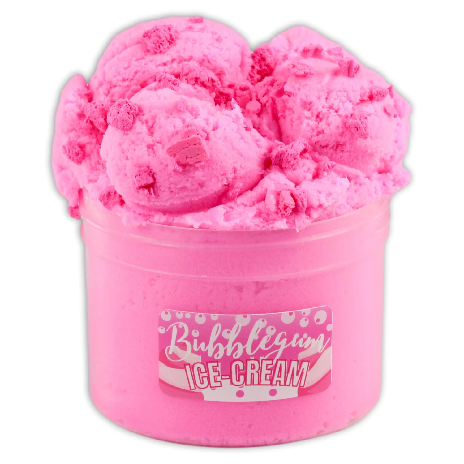 Cloud-like ice cream textured slime scented just like the name! Bright pink color and topped with handmade clay bubblegum chunks. Light & airy, doughy texture that will remind you of the actual treat!