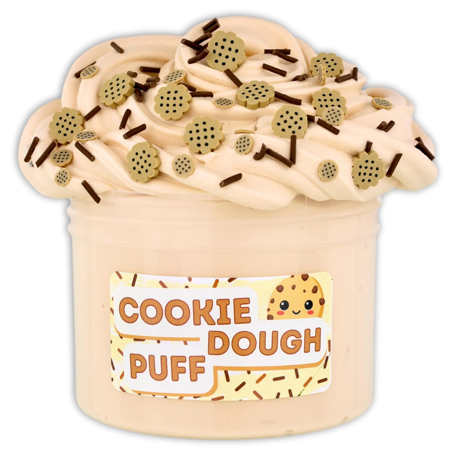 Soft and sweet, this Cookie Dough Puff is a deliciously soft butter slime that will stimulate your senses! Smells just like the real thing: super soft butter slime scented like cookie dough, and topped with brown faux and cookie fimos.