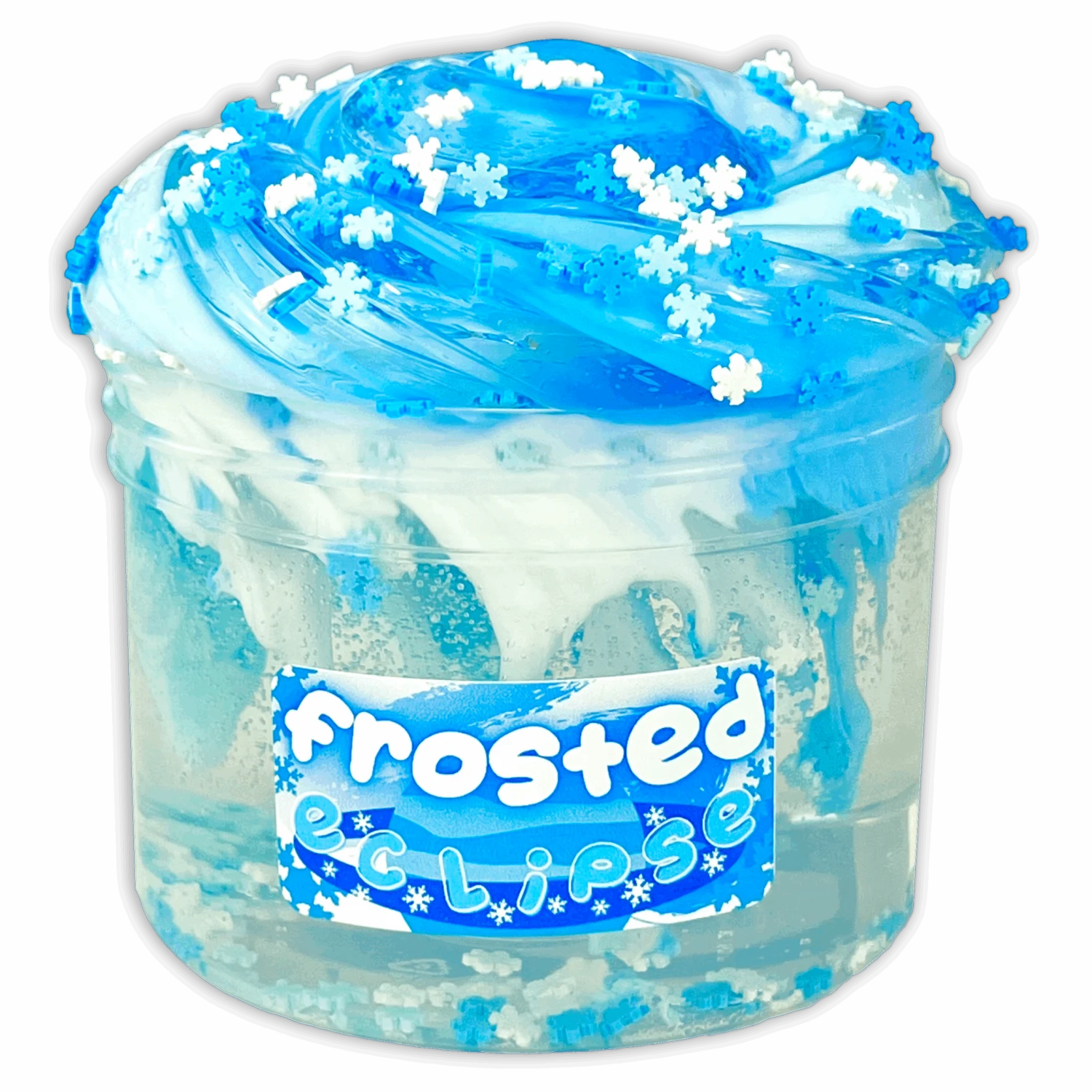 A winter spinoff to our customer favorite Eclipse avalanche slime! Ultra clear, thick slime topped with layers of blue, light blue, & white slime that create a stunning avalanche effect. Topped with snowflake fimos & scented like Sweet Tarts candy. mixes into a milky clear, thick textured slime!