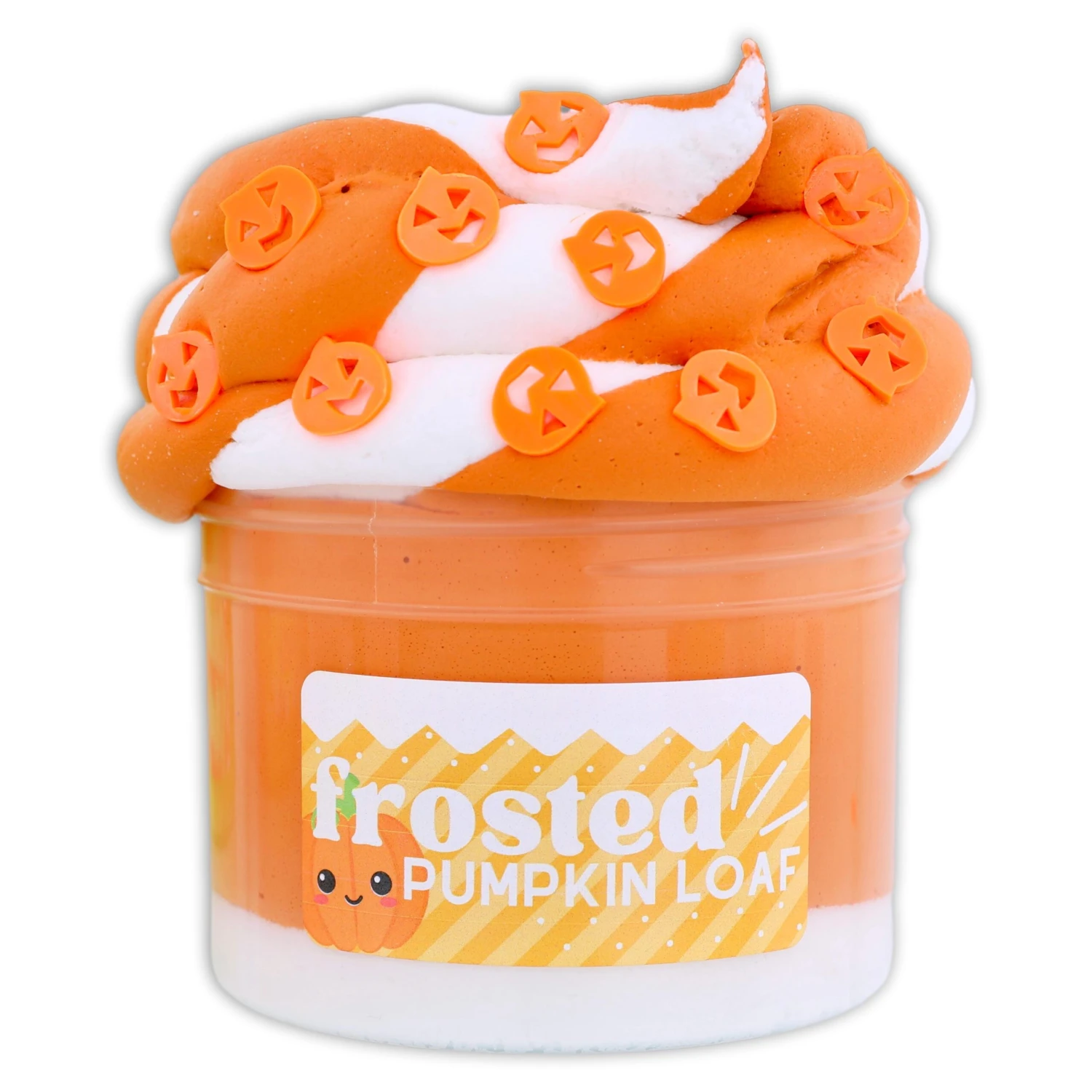 Treat yo’ senses to a slime of pumpkin-scented heaven! Our Frosted Pumpkin Loaf is the perfect mix of soft slime butter slime with a layer of white ice cream textured slime, and topped with Jacko’ lantern fimos. It’s autumn in a Jar! 🎃