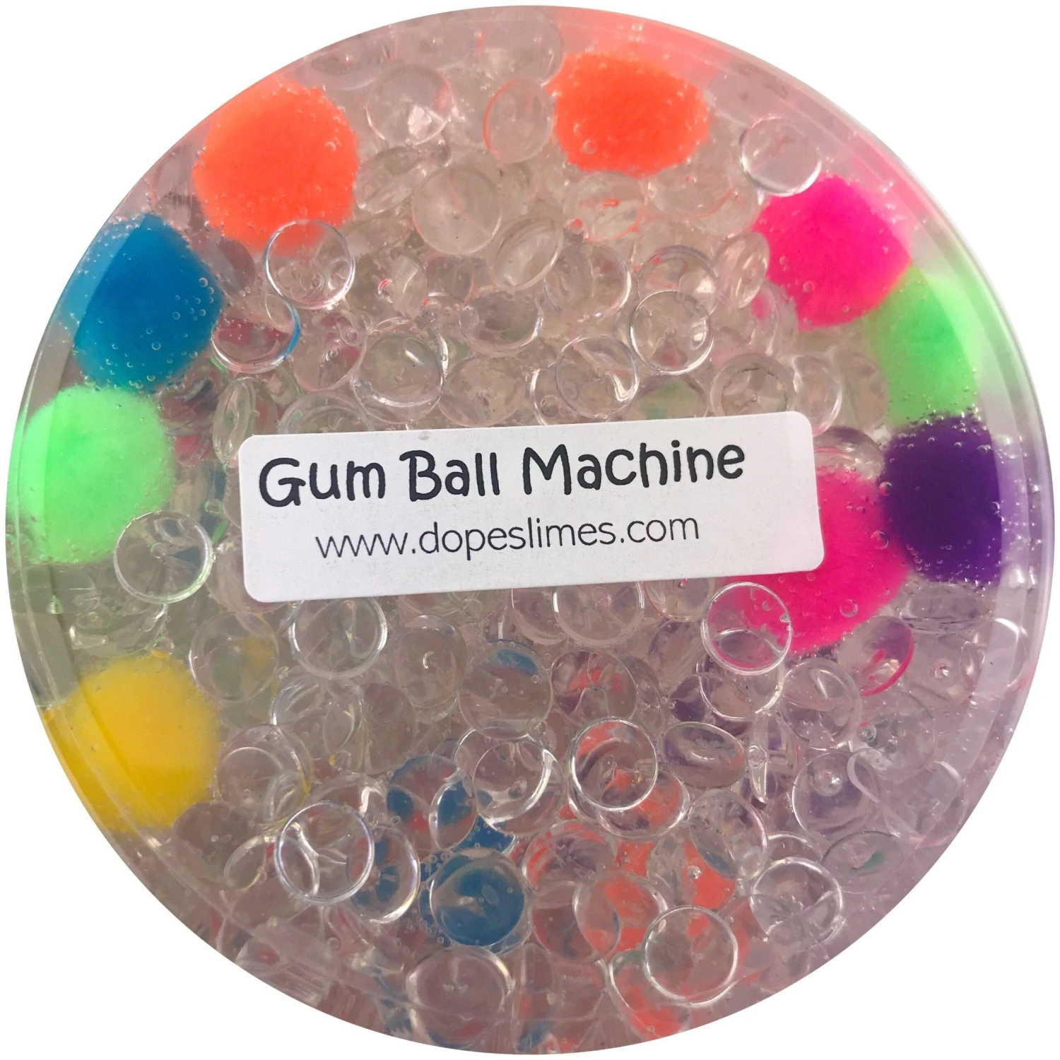 Thick clear slime packed with “fishbowl” beads and rainbow pompoms! Perfect fishbowl slime texture, great for holding! Comes with a cute bubblegum machine charm.
