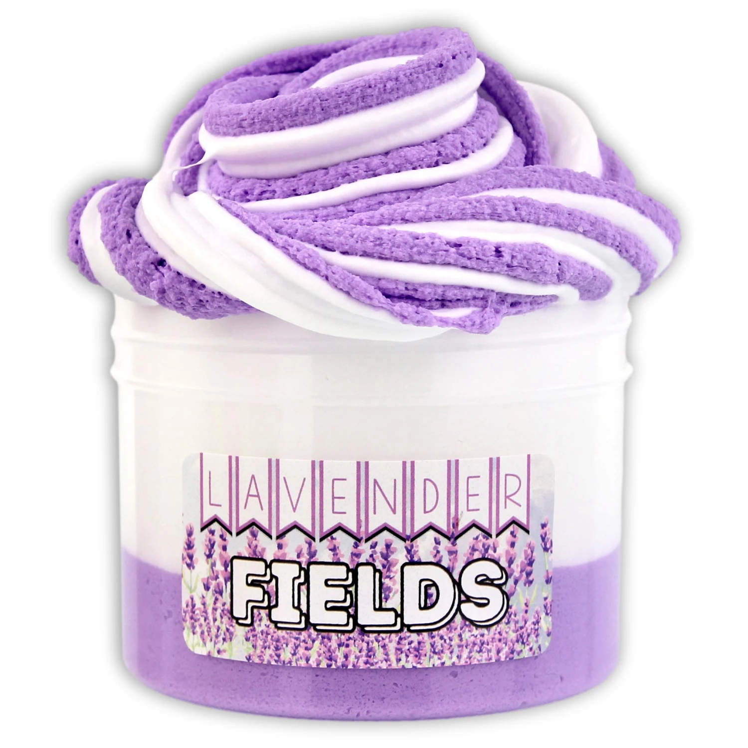 layered clay heavy butter slime with white could slime on top, mixes into a ultra soft cloud dough that you won’t be able to put down! scented just like lavender and topped with purple clay chunks!! the texture is so unique, almost like a super thick, buttery cloud slime! this slime fluffs up like cloud and has a slight fast drizzle!
