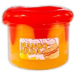 icee / clear slime hybrid inspired by the delicious mexican treat! bright orange colored soft icee slime paired with a layer of red clear slime that mixes into a jelly like icee slime! scented like sweet mango shaved ice.