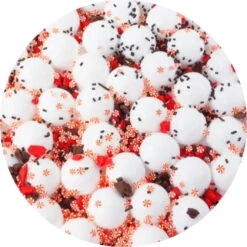 This is a ultra thick and glossy slime with jumbo foam balls! topped with handmade clay chunks, peppermint fimos & sprinkles! the foam balls give this one such a fun texture and it’s soo thick! scented just like white choclaye, peppermint, and a hint of frosting & cake (it smells amazing!!)