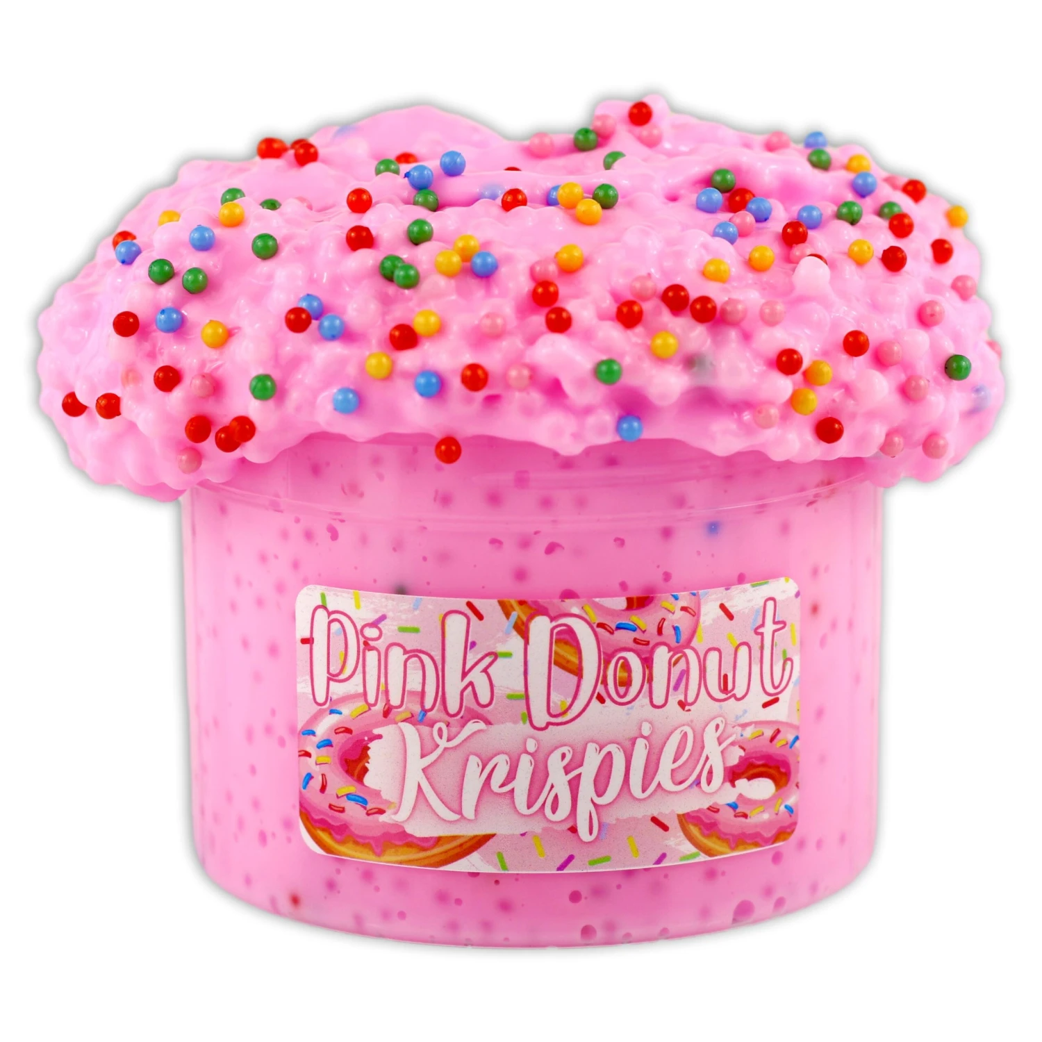 This white glue slushee starts with a pink thick & glossy slime base then packed with slushee beads that add the perfect crunch. Topped with rainbow mini pearl sprinkles & scented blueberry donut! This slime is great for any texture lovers!