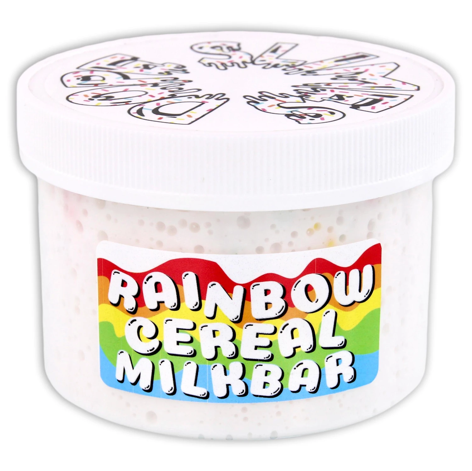 this cereal themed floam starts with a thick & glossy base, then packed with foam beads! micro & regular sized foam beads throughout for added texture. topped with a rainbow milk sprinkle mix & smells just like your favorite fruity cereal.