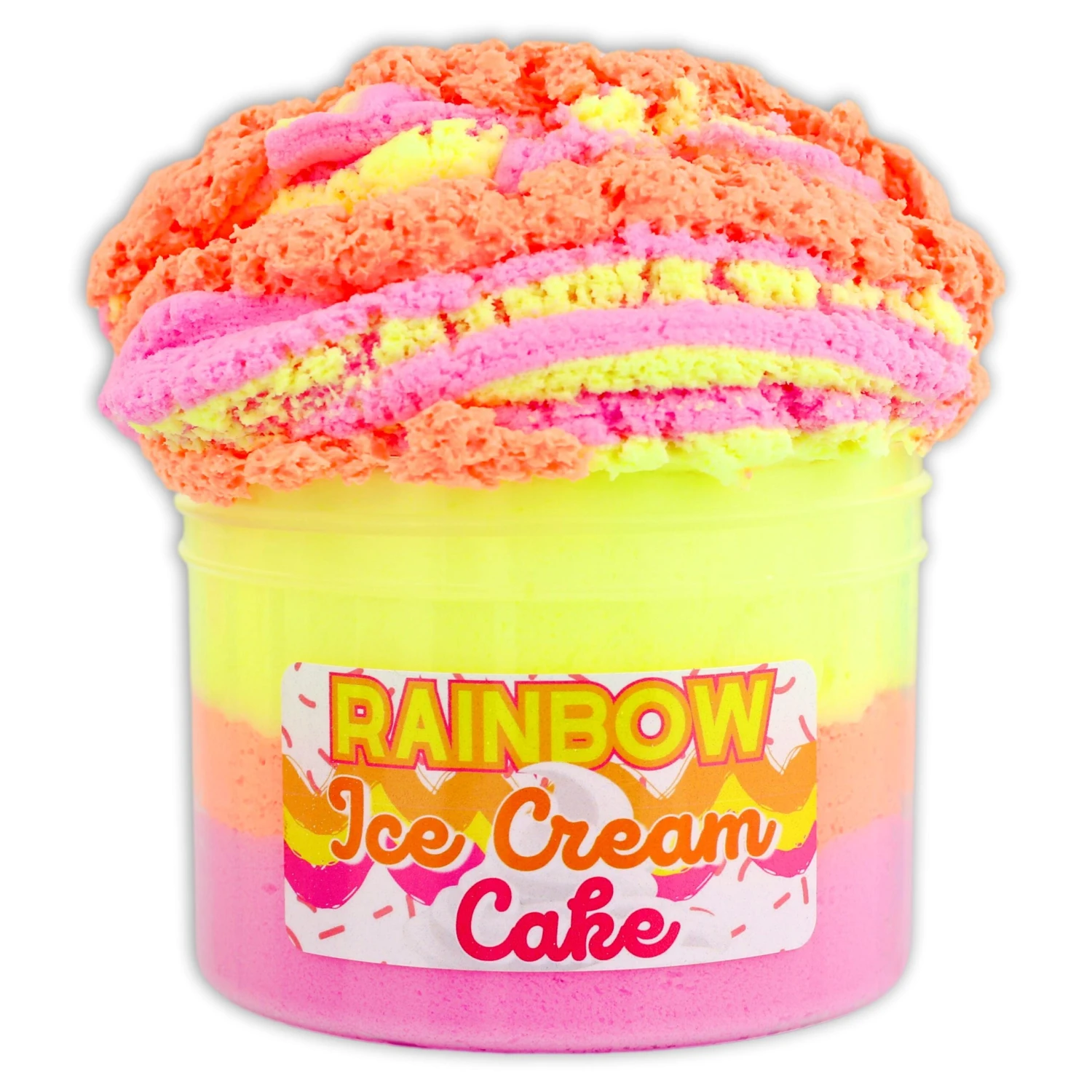 This Rainbow Ice-Cream Cake is the perfect way to put some wow-factor in your playtime! 2 layers of dense yet ultra soft ice cream textured slime, then a layer of orange snow fizz in the middle! scented fruit cereal & vanilla cake! Get your hands on this cool, soft ice-cream textured slime creation today!