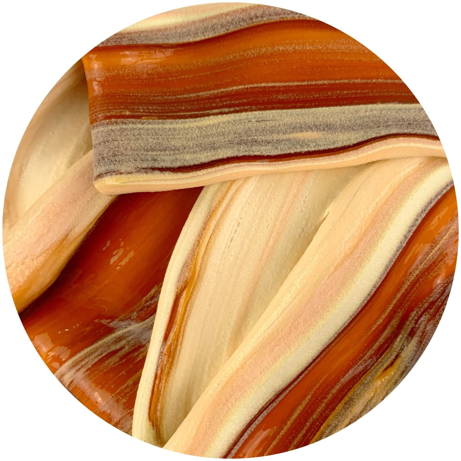 Super self inflating butter slime with clear “caramel” slime swirled throughout to mix in yourself. Super spreadable, smooth, and soft!