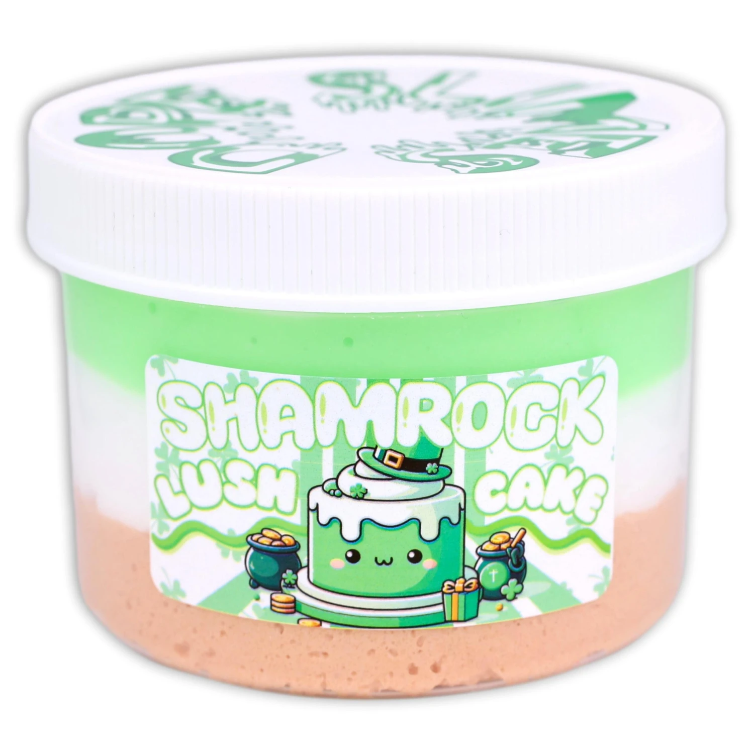 Get lucky with our Shamrock Lush Cake! This St Patrick’s limited edition slime is a triple treat. Dig into a snowfizz crust atop an ice-cream white base, topped with a thick and glossy green slime, and another layer of ice cream slime! Mixes into a satisfying, unique texture you won’t be able to put down!