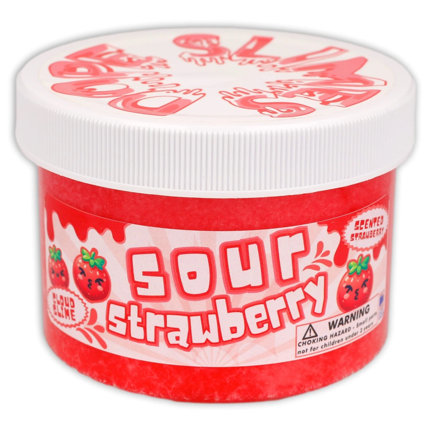 Get ready to pucker up with Sour Strawberry cloud slime! This bright red slime is perfect for any strawberry lovers, scented just like strawberry! Plus, it comes with our custom shaped sour strawberry face fimo slices, a strawberry charm, and red sprinkles for an extra fun touch!
