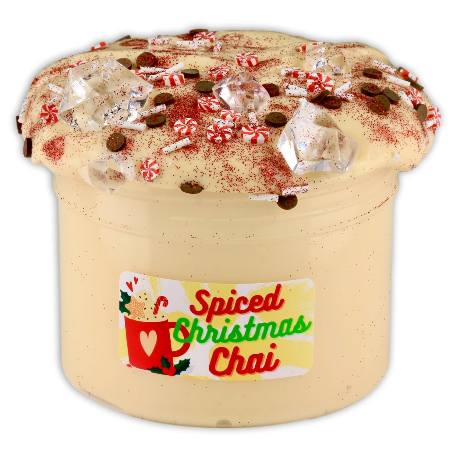 Get in the Christmas sprit with our new Spiced Chai slime. Milky glossy thick slime filled with red glitters & topped with a peppermint sprinkle mix & fake ice cubes. Scented just like chirstmas chai, one of our most realistic scent!