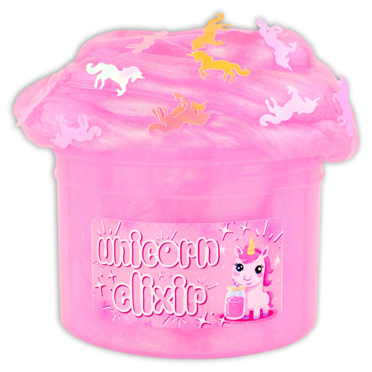 Unleash your inner unicorn with Unicorn Elixir! This pink pigmented clear slime not only sparkles with magical color shifts, but it’s also topped with unicorn glitter for an extra touch of enchantment. Experience the magic for yourself! Unscented.