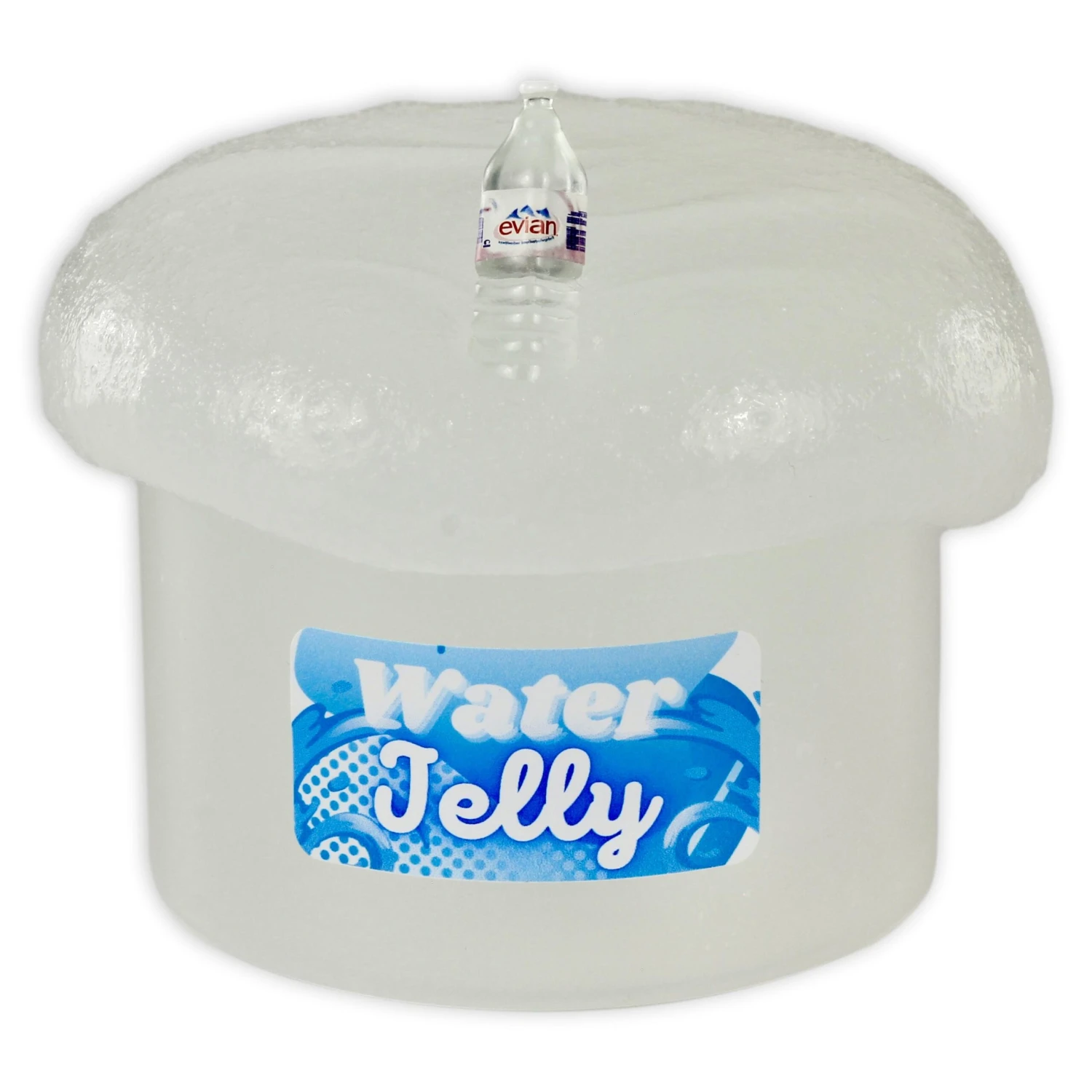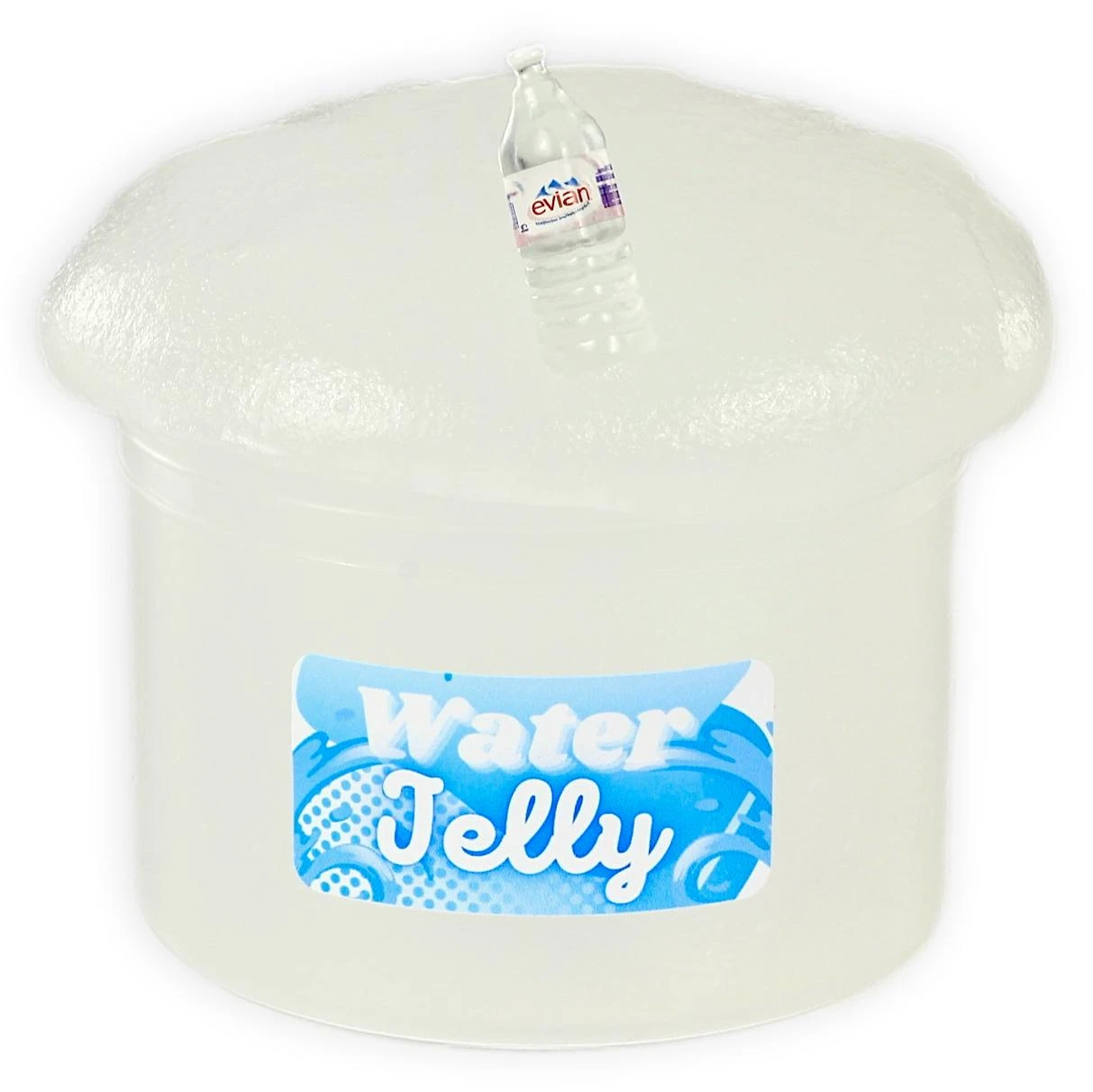 clear, thick and juicy jelly slime base scented lightly of fresh rain and topped with a water bottle charm! basic yet stunning slime that has the perfect inflating texture!
