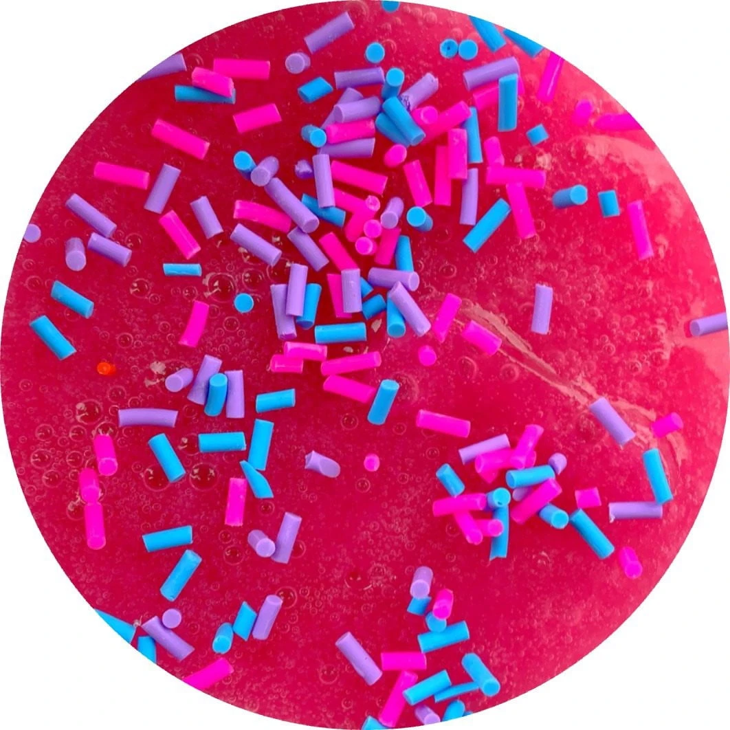 Thick and squishy jelly slime, with the custard sprinkle mix and base color! So fun to poke, squeeze, stretch & inflate! Smells so good and the texture is amazing.