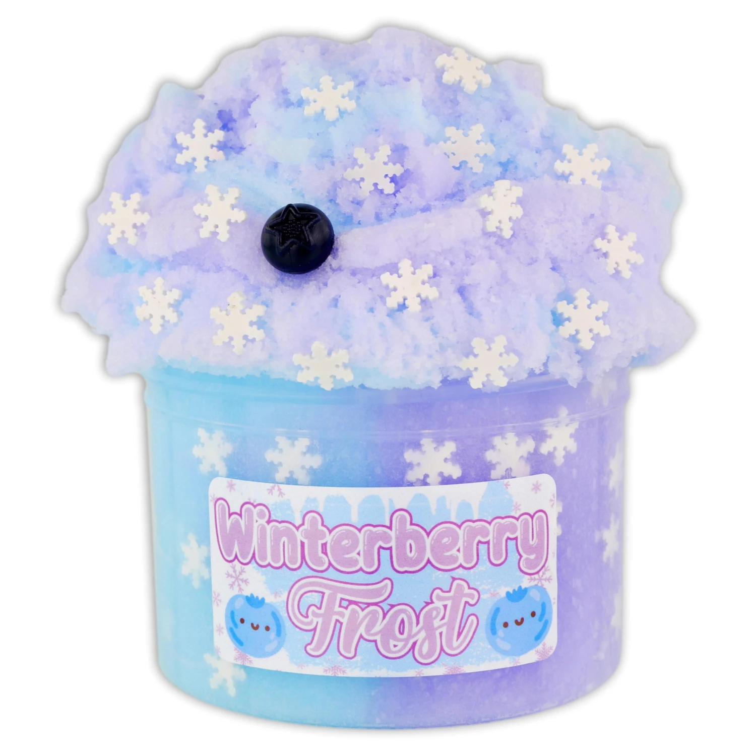 Experience a winter wonderland with Winterberry Frost! This gorgeous icee slime combines pastel blue and purple colors, snowflake fimos, and a blueberry on top. The scent of frosted berries will transport you to a dreamy world. Get ready to play with this dreamy slime!